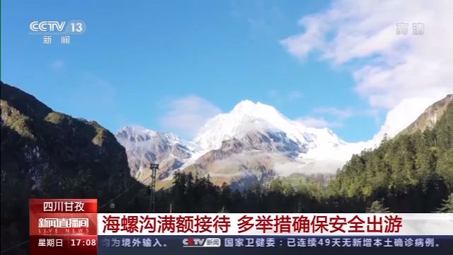 節(jié)日期間的海螺溝景區(qū)晴空萬里,海拔6410米的貢嘎山金銀峰,在藍(lán)天白云映襯下更顯巍峨壯麗。