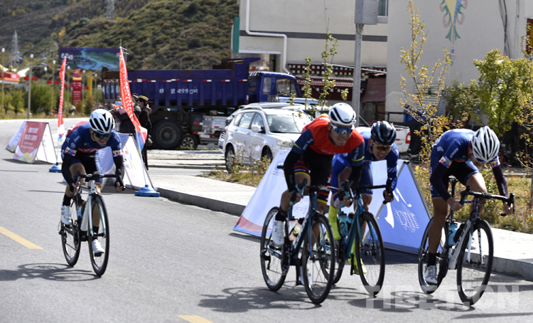 圖為2020第三屆跨喜馬拉雅自行車極限賽公路自行車賽第一段男子組參賽選手抵達(dá)終點(diǎn) 攝影:王媛媛