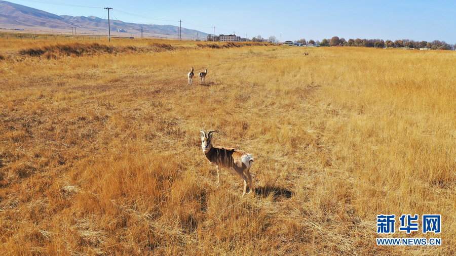 深秋時(shí)節(jié)的青海湖,芳草萋萋,遍地金黃。漫步在湖畔草原上的普氏原羚,幾乎與金黃的牧草融為一體。它們時(shí)而跳躍、時(shí)而奔走,就像湖邊一群群舞動(dòng)的精靈。