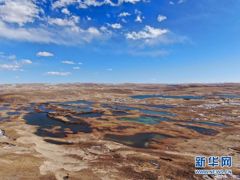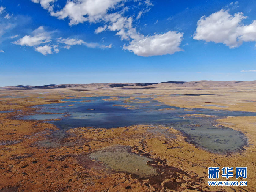 這是10月30日在青海省果洛藏族自治州瑪多縣境內(nèi)拍攝的一處濕地(無人機照片)。新華社記者 張龍 攝