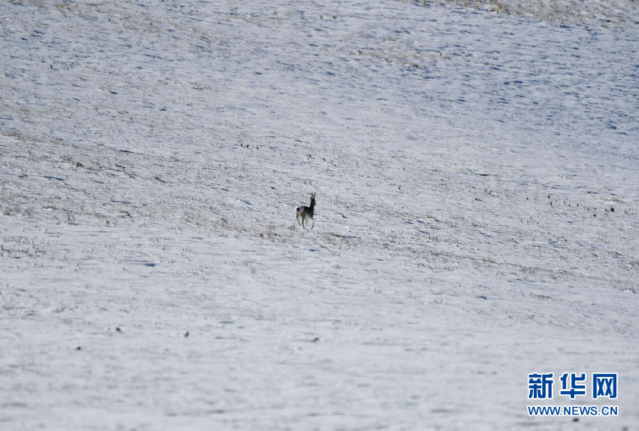 這是10月29日在青海省玉樹藏族自治州稱多縣嘉塘草原上拍攝的一只藏原羚。新華社記者 張龍 攝