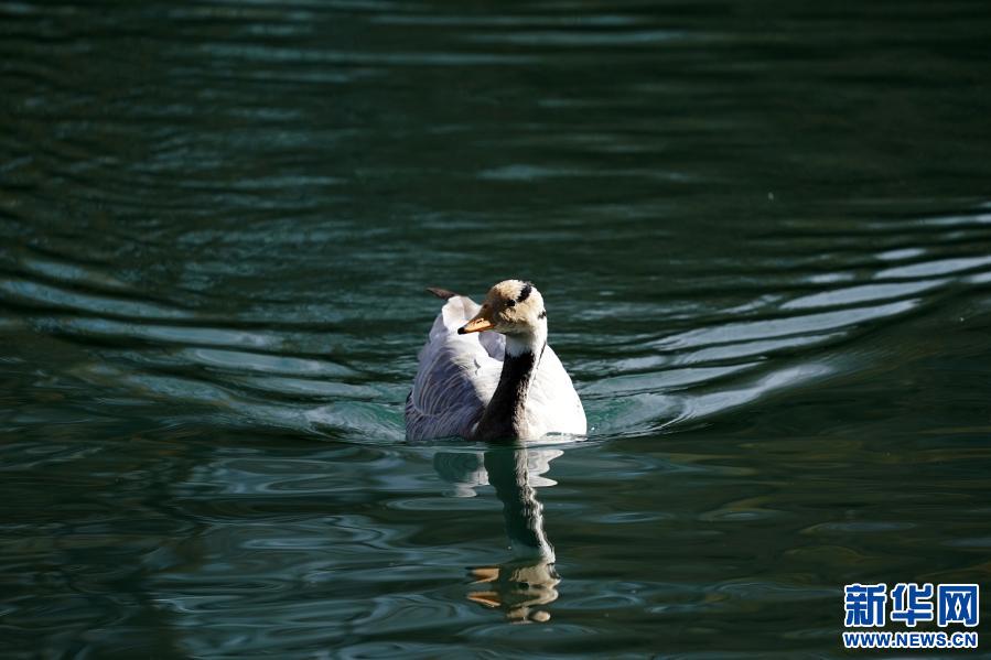 11月23日,斑頭雁在龍王潭公園的水面上游弋。新華社記者 詹彥 攝