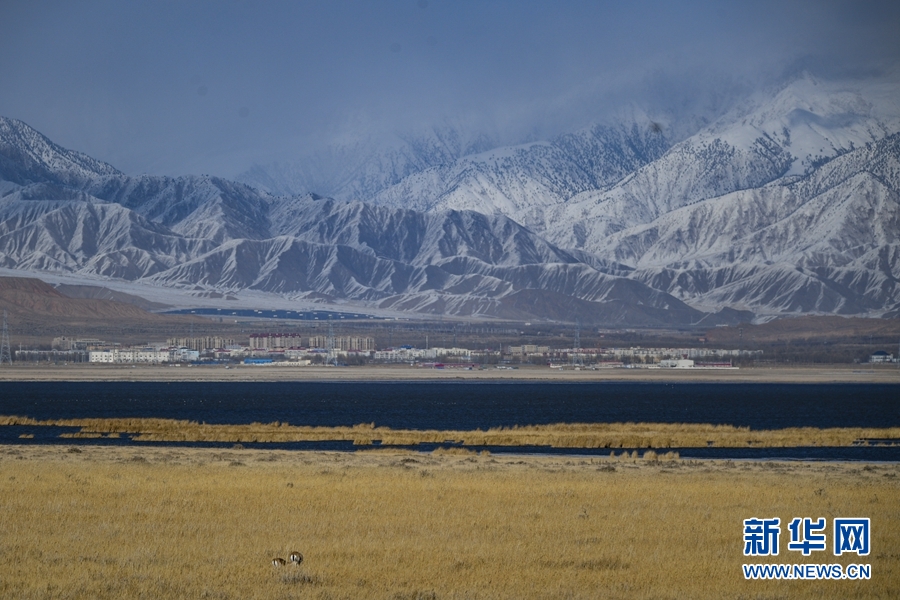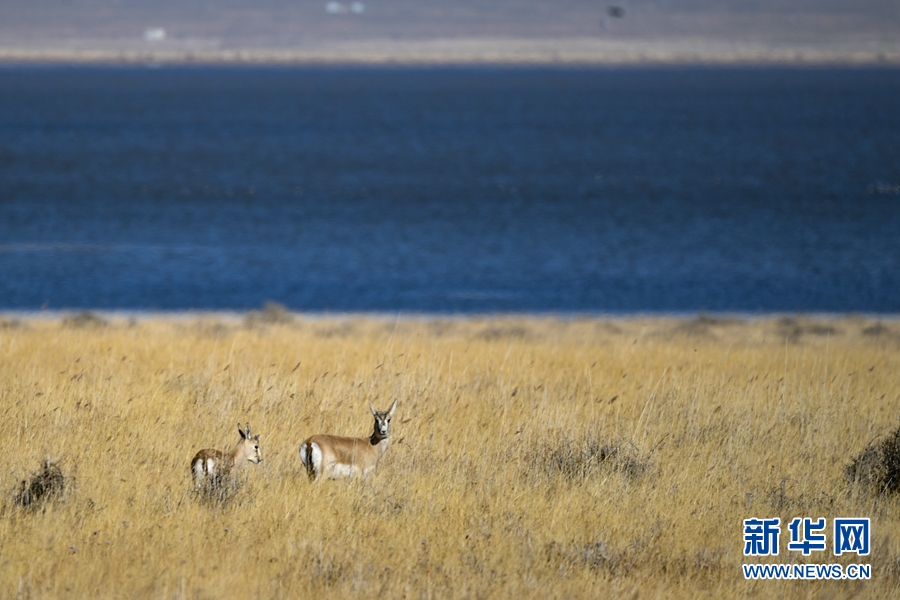 在都蘭湖國(guó)家濕地公園內(nèi)拍攝到的鵝喉羚。(11月21日攝)新華網(wǎng) 潘彬彬攝