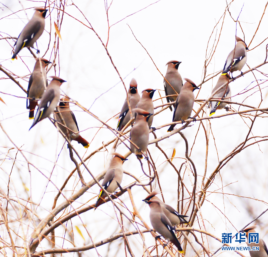 一群太平鳥在樹枝上休憩。新華網(wǎng)發(fā)(李崇軒攝)