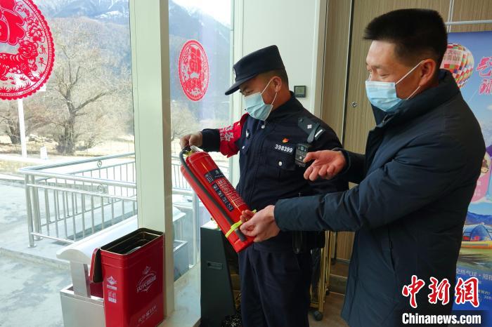 派邊境派出所民警在轄區(qū)內(nèi)酒店檢查消防設(shè)施。 冉文娟 攝