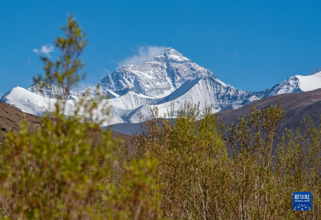 在扎西宗鄉(xiāng)拍攝的珠穆朗瑪峰。新華社記者 孫非 攝