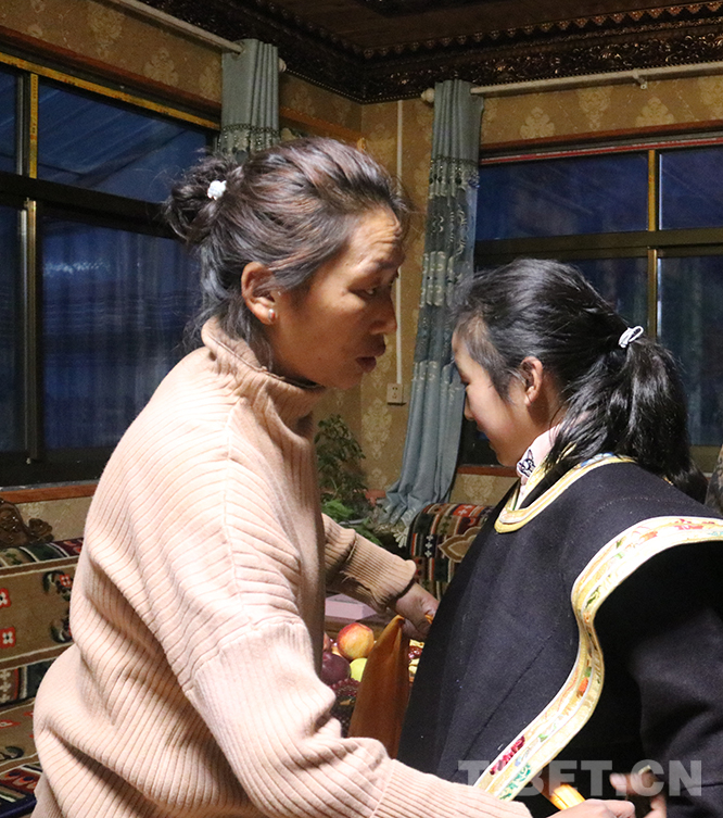 圖為西繞的孫女準備穿工布傳統(tǒng)服裝,迎接新年
