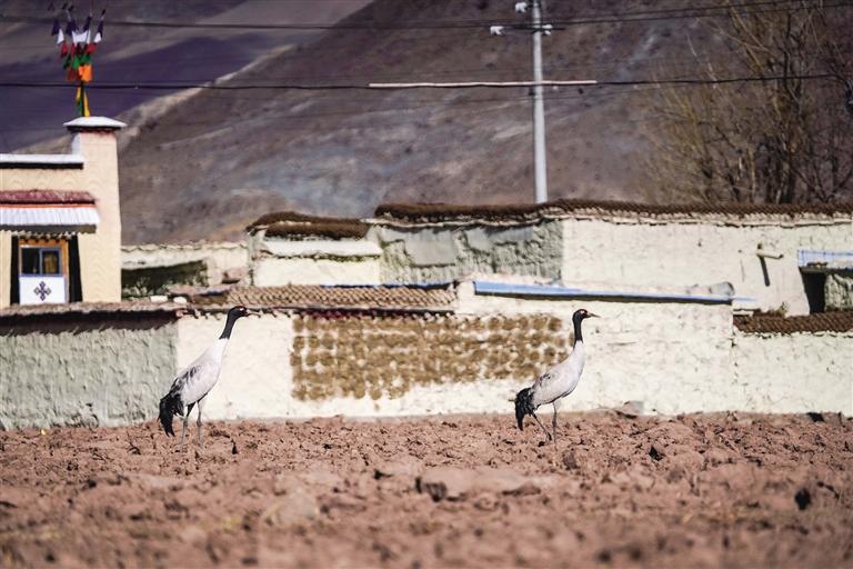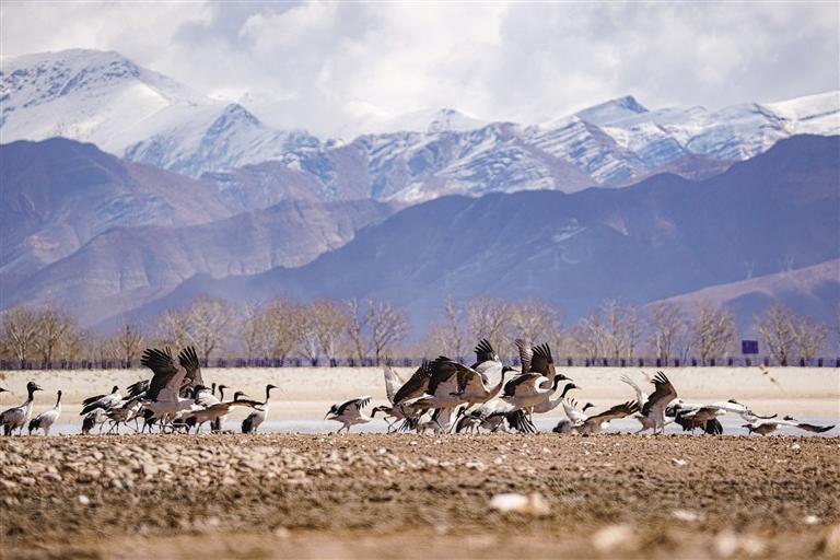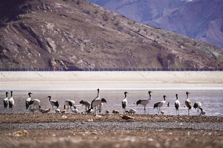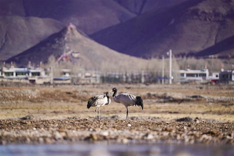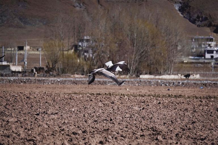 黑頸鶴是國(guó)家一級(jí)保護(hù)動(dòng)物,在藏語(yǔ)中稱為“沖沖”。主要棲息在海拔2500米至5000米的高原、草甸、沼澤地帶。拉薩北部的林周縣平均海拔約4200米,是黑頸鶴的主要越冬地之一。最近這段時(shí)間,對(duì)拉薩市林周縣野保員們來(lái)說(shuō),一邊要忙自家的農(nóng)活,一邊還要巡查候鳥情況?!耙呀?jīng)有一小部分飛走了,估計(jì)再過(guò)半個(gè)月都會(huì)陸續(xù)飛走?!?月23日上午,野保員旦增告訴記者,在虎頭山水庫(kù)和卡孜水庫(kù)越冬的候鳥有一部分已經(jīng)飛走了。野保員口中的“飛走”便是遷徙,遷徙是候鳥的本能,一年一年,跟隨時(shí)間的召喚,完成兩次遷徙:繁殖和越冬。