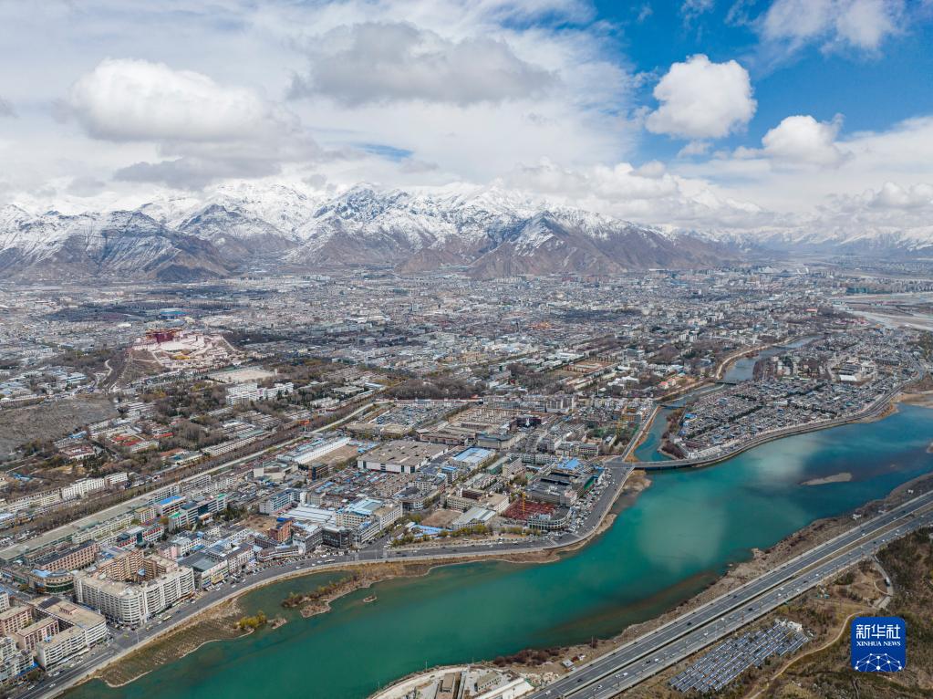 空中俯瞰拉薩雪景(3月30日攝,無(wú)人機(jī)照片)。新華社記者 孫非 攝