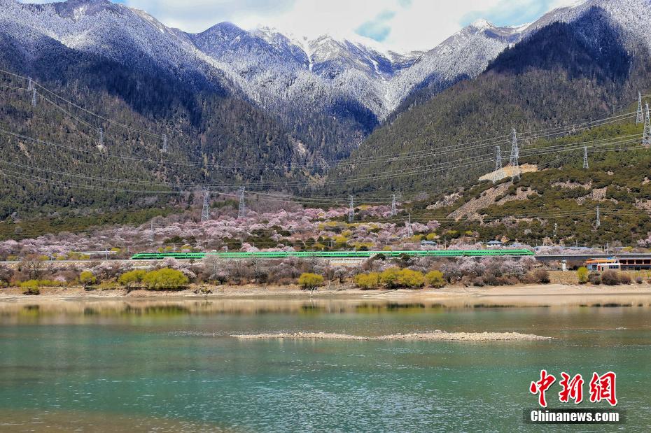 雪山、雅魯藏布江、高原復興號以及沿線的桃花。