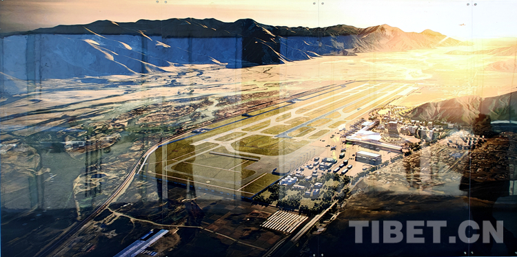 圖為拉薩貢嘎機(jī)場(chǎng)新建第二跑道建設(shè)完成后的拉薩貢嘎機(jī)場(chǎng)效果圖 翻拍:王佳豪
