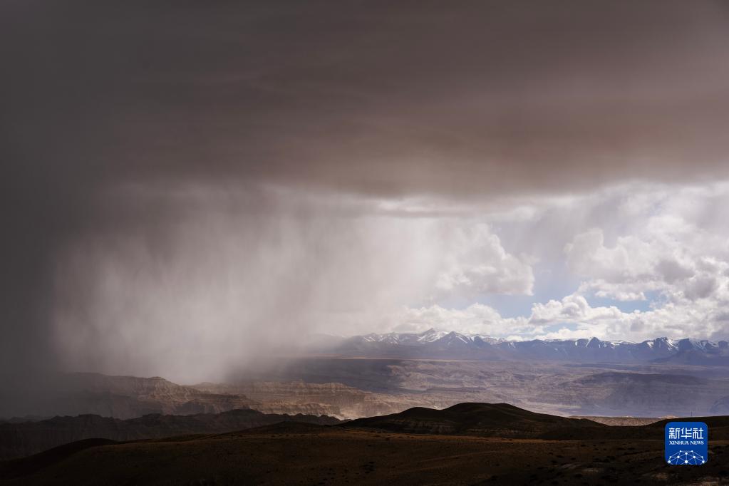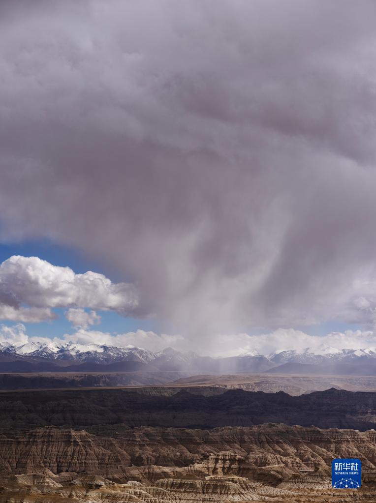 一片雨云飄到札達(dá)土林上空(5月25日攝)。新華社記者 費(fèi)茂華 攝