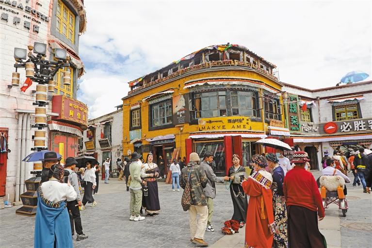 在這里,有林芝工布公園經(jīng)久不息的鍋莊舞、阿里獅泉河兩岸休閑散步的市民、山南昌珠廣場(chǎng)夜間文化和旅游消費(fèi)集聚區(qū)的喧囂……這里匯聚著高原360多萬(wàn)各族群眾的鮮活生活之美。