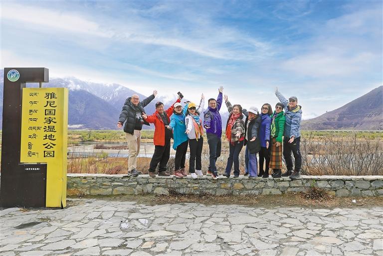 游客在林芝市雅尼國(guó)家濕地公園拍照留影。