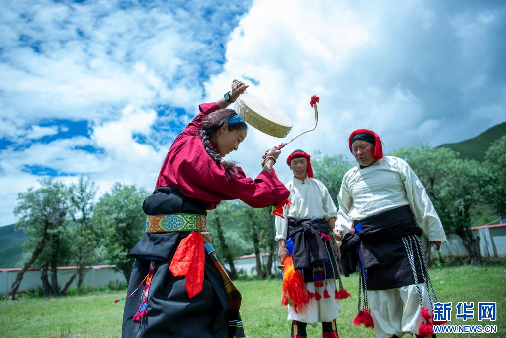 7月12日,西藏昌都市丁青縣尺犢鎮(zhèn)烏巴村文藝演出隊(duì)隊(duì)員在排練。 新華網(wǎng) 旦增努布 攝