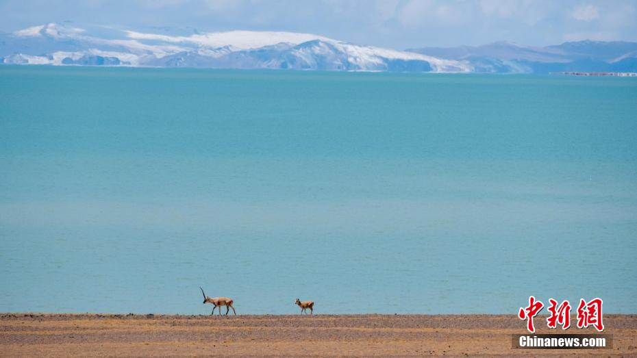 資料圖為西藏色林錯(cuò)湖畔的藏羚羊和遠(yuǎn)處的雪山風(fēng)光。江飛波 攝