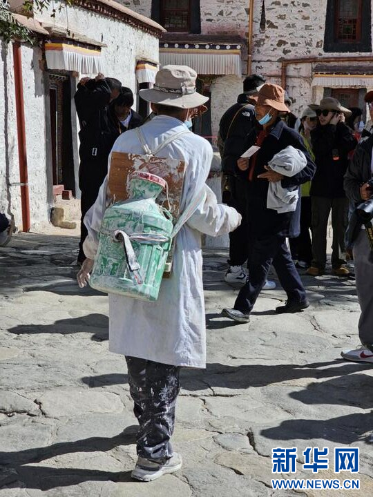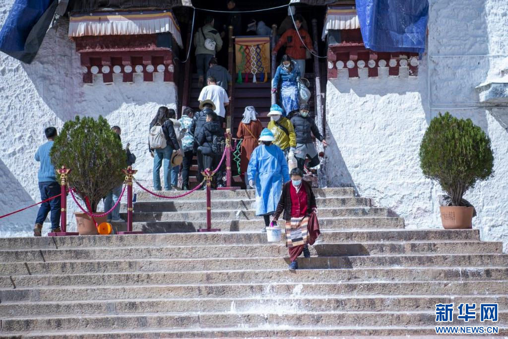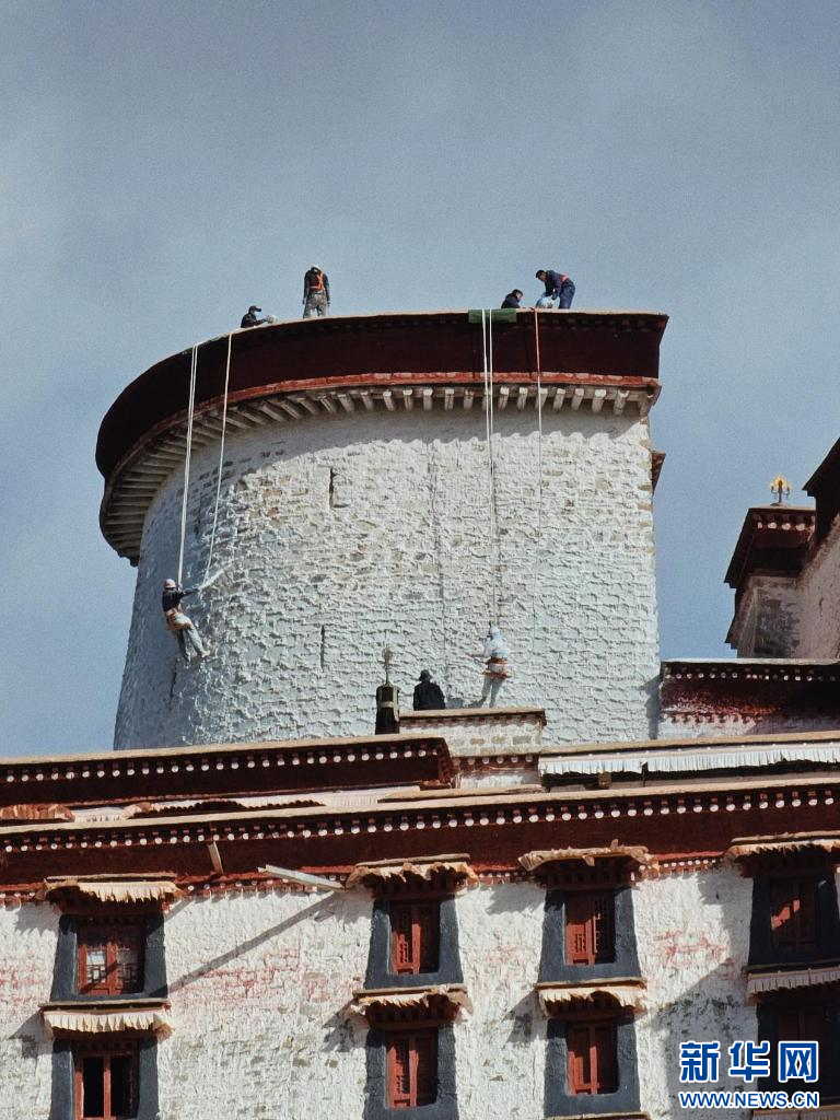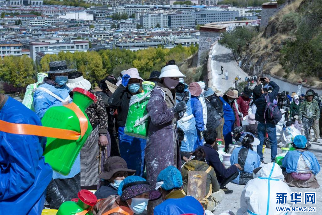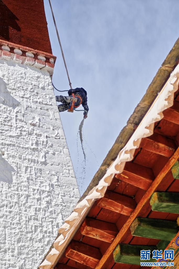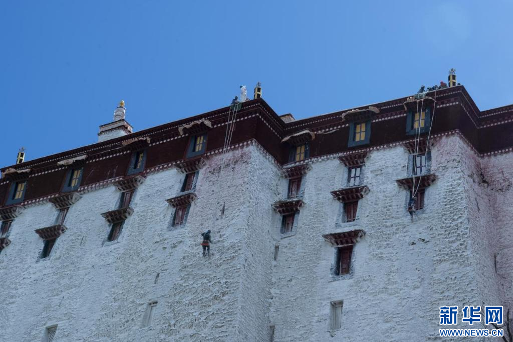 10月18日,布達(dá)拉宮“美容師”們?cè)趪姙⑼鈮?。新華網(wǎng) 旦增努布 攝 ??