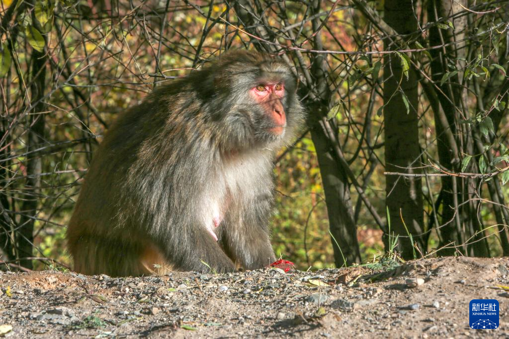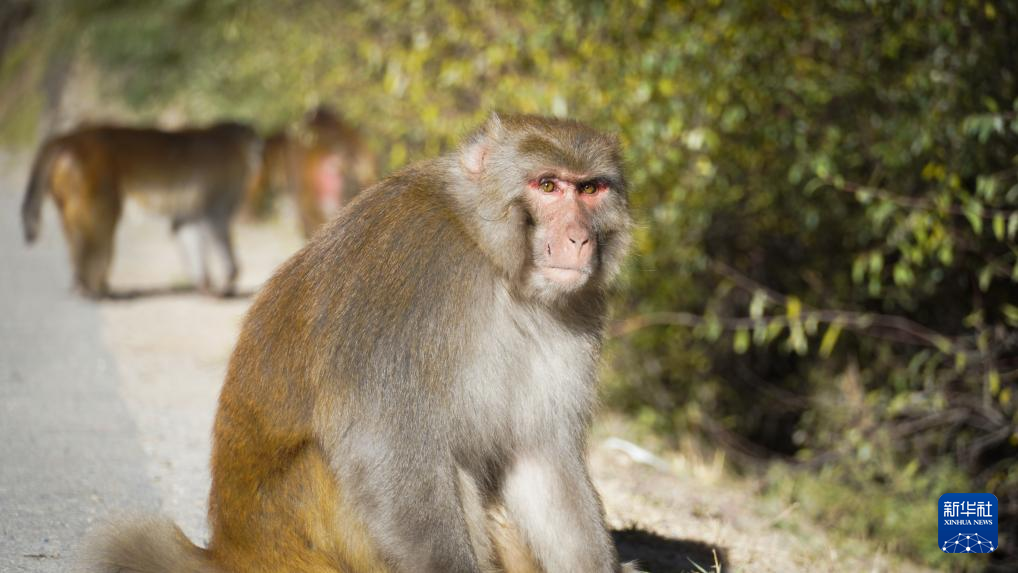在317國道旁拍攝的野生藏獼猴(10月25日攝)。新華社記者 邵澤東 攝