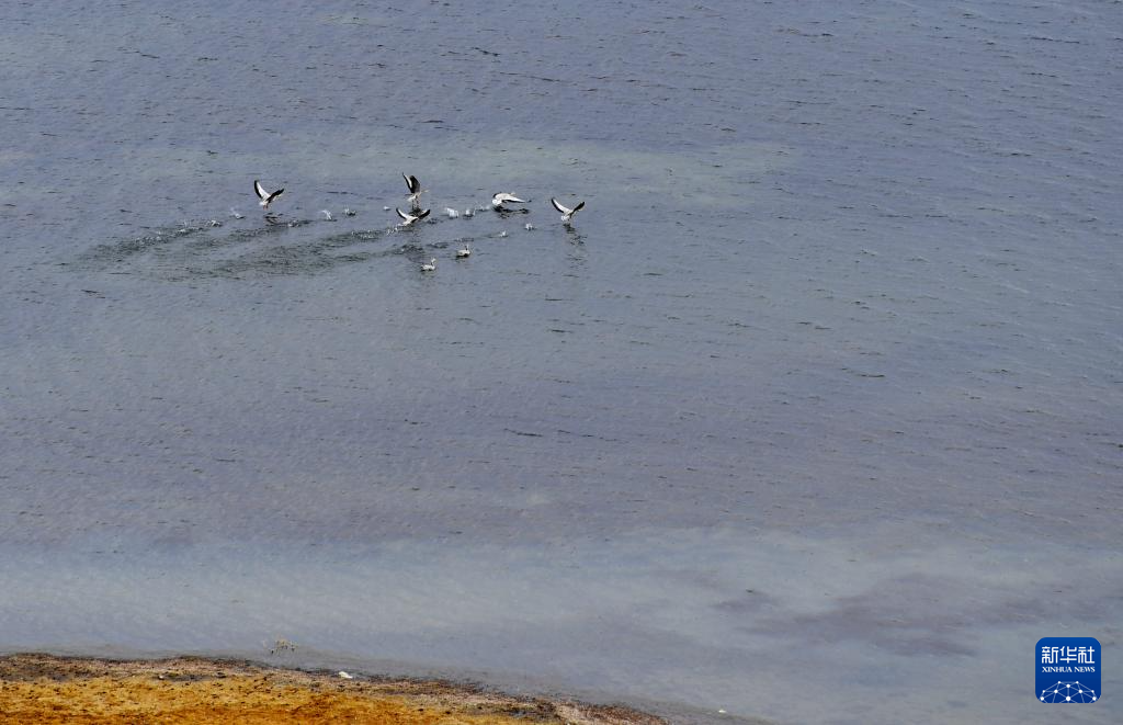 瑪旁雍錯湖面上的斑頭雁(10月29日攝)。新華社記者 張汝鋒 攝