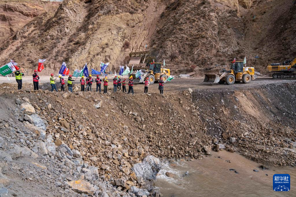 10月31日,施工人員在慶祝河道成功截流。新華社記者 孫非 攝