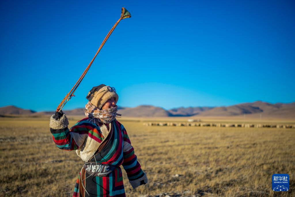 丹增在牧場(chǎng)上放羊(12月18日攝)。新華社發(fā)(旦增努布攝)