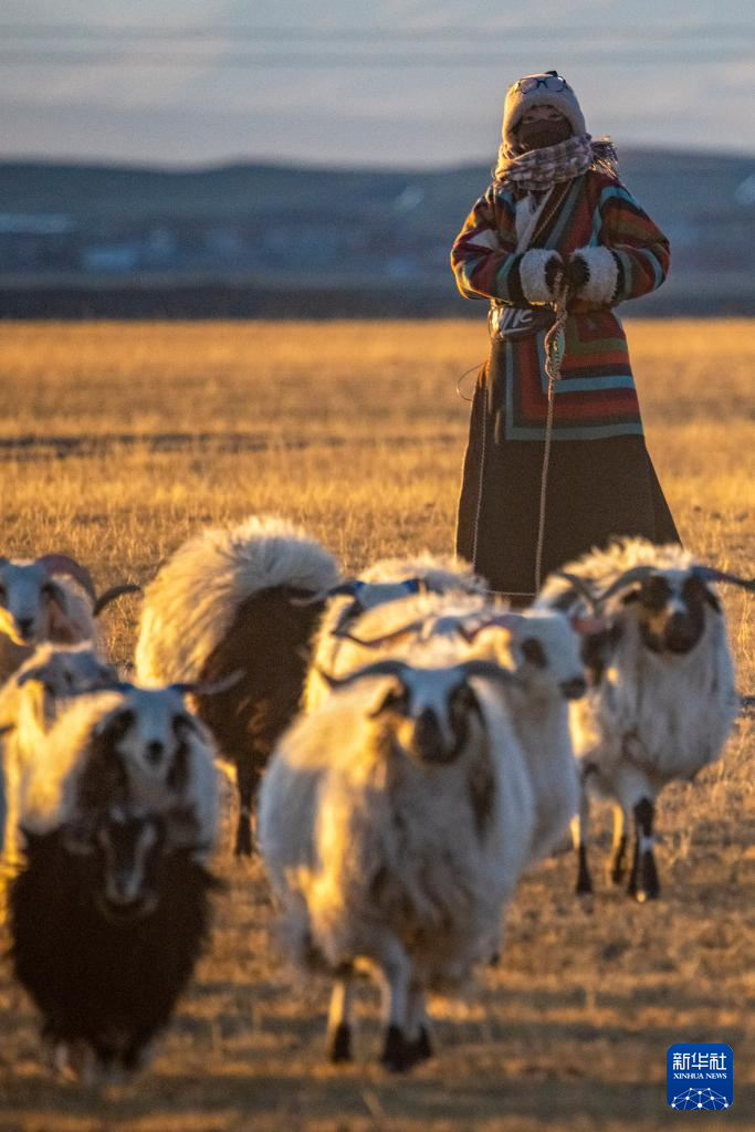太陽(yáng)落山,丹增趕著羊回圈(12月18日攝)。新華社記者 姜帆 攝