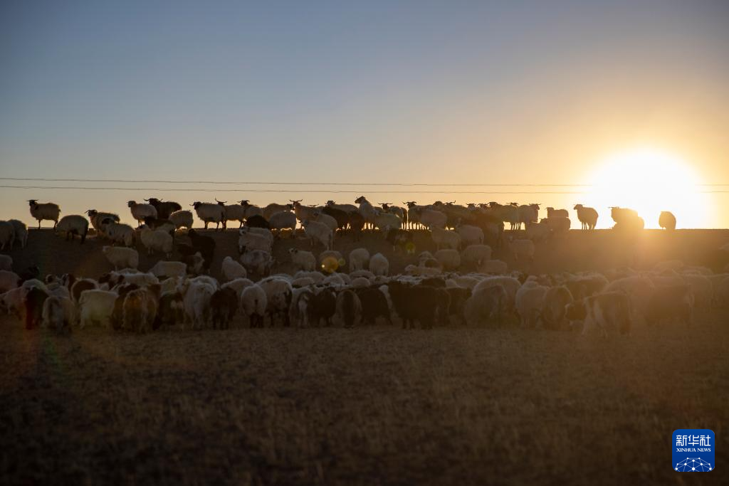 太陽(yáng)落山,丹增家的羊從草場(chǎng)趕回棚圈(12月18日攝)。新華社記者 姜帆 攝
