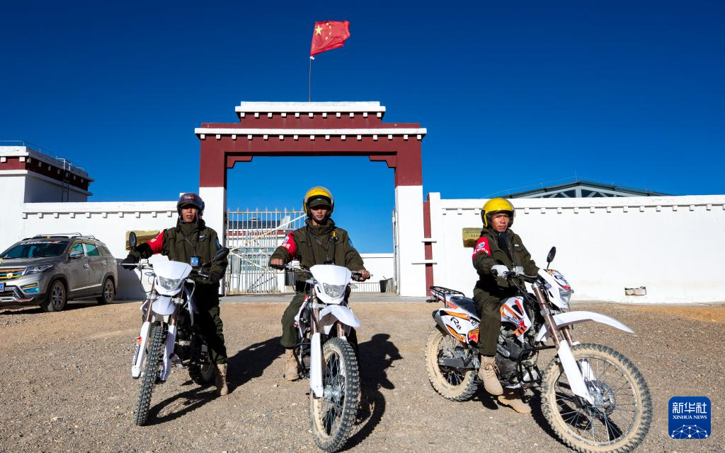 巡護(hù)隊(duì)員們騎上山地摩托準(zhǔn)備出發(fā)巡護(hù)(12月17日攝)。新華社記者 姜帆 攝