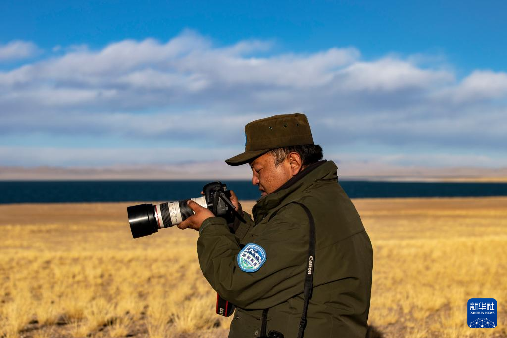 格桑倫珠在巡護(hù)途中拍攝野生動(dòng)物(12月21日攝)。新華社記者 姜帆 攝