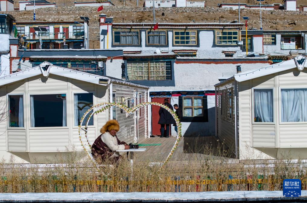 尼瑪縣文部鄉(xiāng)文部南村村民尼瑪扎巴坐在自己的“太空艙旅店”的椅子上(無人機照片,12月20日攝)。新華社記者 格桑朗杰 攝