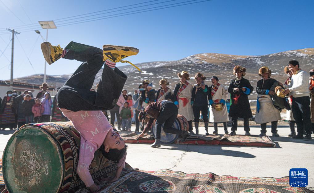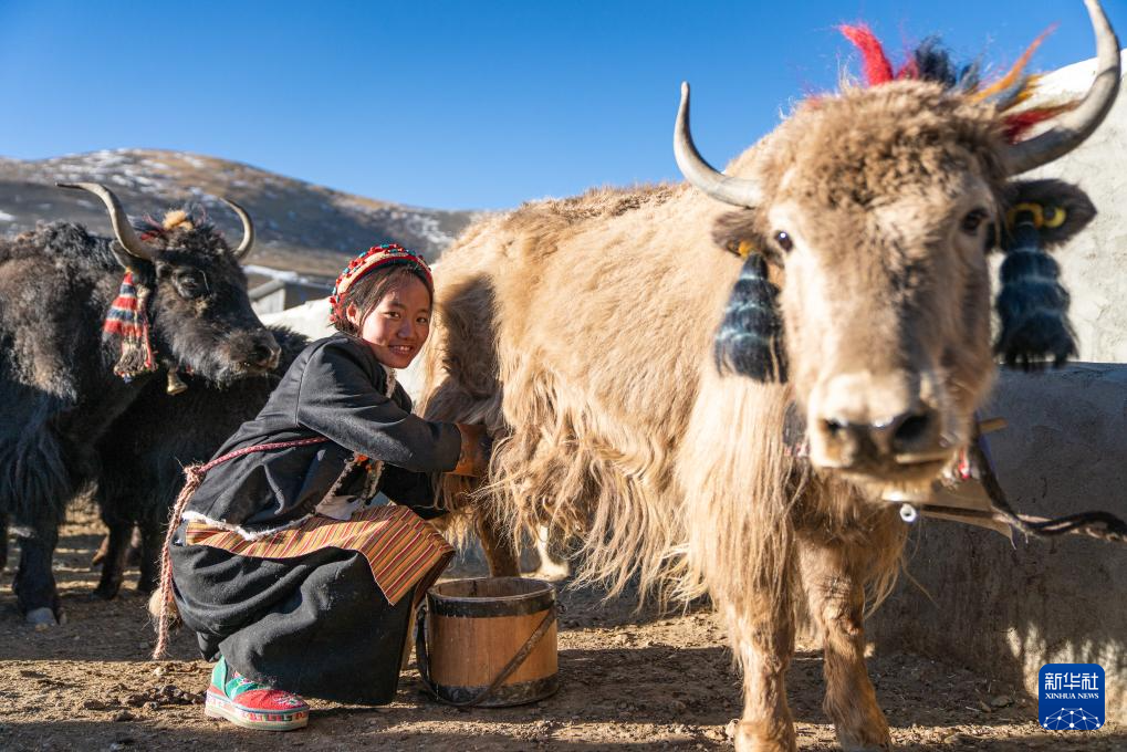 1月13日,時(shí)值西藏日喀則一帶傳統(tǒng)的農(nóng)家新年大年初二。坐落于群山間的日喀則市白朗縣東喜鄉(xiāng)思古龍村,延續(xù)傳統(tǒng)習(xí)俗,舉行擠牛奶、擲牛角等傳統(tǒng)文體比賽和翻桶接力賽等娛樂(lè)活動(dòng),以此慶祝新年。