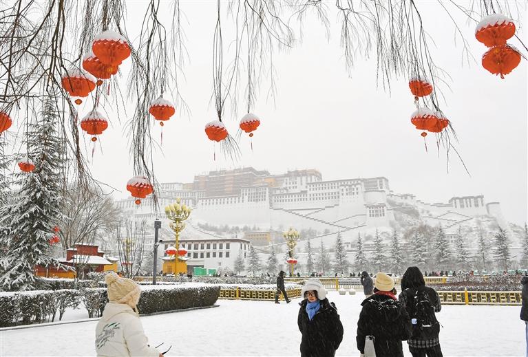1月18日是農(nóng)歷臘八節(jié),拉薩也迎來(lái)了新年之后的第二場(chǎng)大雪,古城處處銀裝素裹,布達(dá)拉宮在白雪映襯下,顯得格外圣潔莊嚴(yán)。