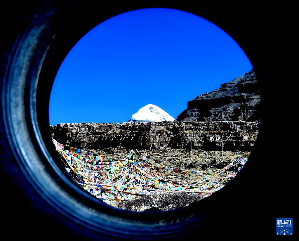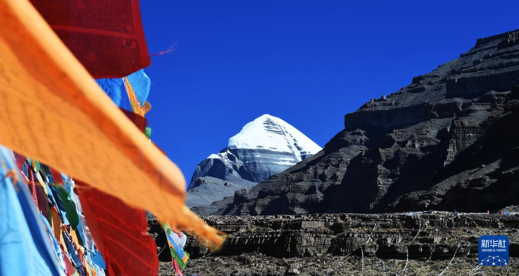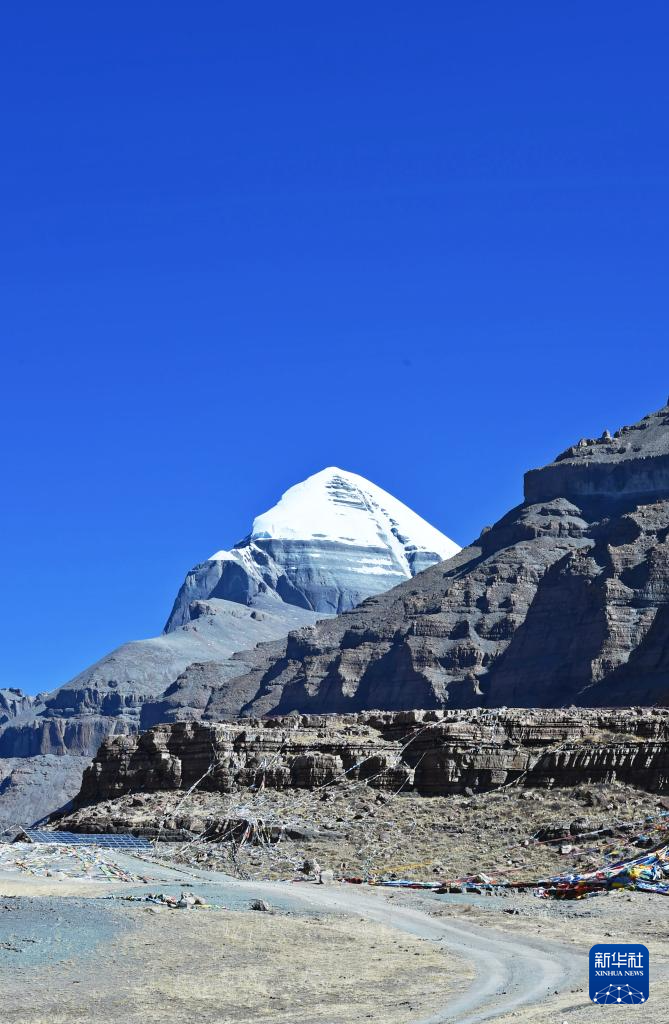 ??岡仁波齊峰與經(jīng)幡(1月30日攝)。新華社記者 關明輝 攝