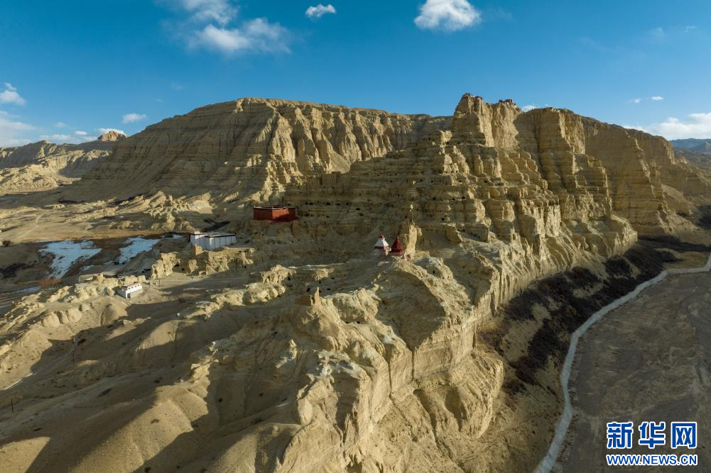 1月30日拍攝的古格王國(guó)遺址腳下的一座寺廟。新華網(wǎng) 旦增努布 攝