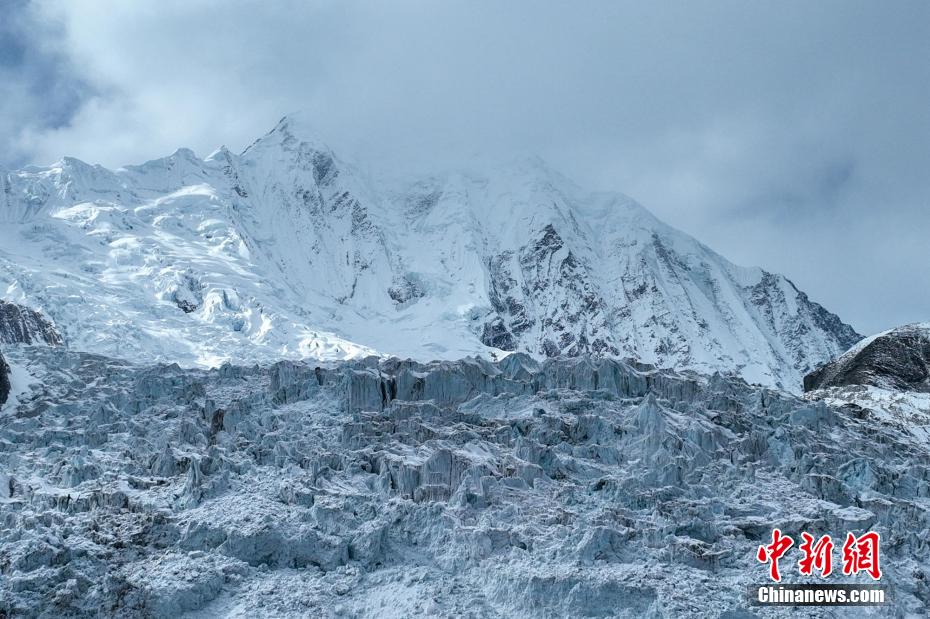 2月2日,四川省甘孜藏族自治州瀘定境內(nèi),一場雪后的貢嘎山披上了厚厚的“白紗”,在貢嘎山東坡順山而下的冰川沿海螺溝山谷綿延10多公里,就像一條“巨龍”盤在山谷中,十分壯觀。貢嘎山坐落于橫斷山系大雪山中段,主峰海拔7756米,被譽為蜀山之王。海螺溝冰川也是貢嘎山數(shù)十條冰川中規(guī)模最大、形態(tài)最美的一條。經(jīng)歷了2022年“9·5”瀘定地震后,海螺溝景區(qū)道路等重建工作完成,步游道、旅游服務(wù)設(shè)施升級,游客逐步回升。航拍鏡頭下的海螺溝冰川粒雪盆下端的“冰川冰”。記者 劉忠俊 攝