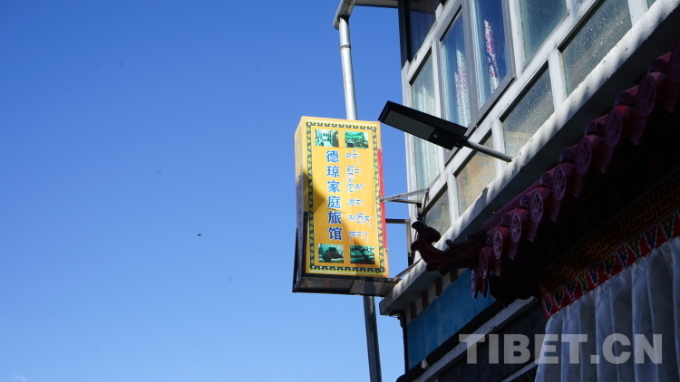 二十世紀八十年代前,整個洛扎縣的機動車普及率很低,普通百姓出門只能乘坐馬車,從拉康鎮(zhèn)到洛扎縣縣城需要三天時間。所以在那時候,鎮(zhèn)子里的人很少去縣城,一些老人甚至一輩子也沒走出過拉康。2019年,拉康鎮(zhèn)的盤山公路全線通車,極大地改善了當地與外界的交流交往,拉康鎮(zhèn)客流量逐步提升,2022年景區(qū)年旅游人次達38000余人次,政府在發(fā)展旅游業(yè)的同時,投入100余萬元帶動居民開辦家庭旅館——村民將自家空余的房間對外短租,形成民俗式的家庭旅店,德瓊家庭旅館就是這樣的一間旅館。