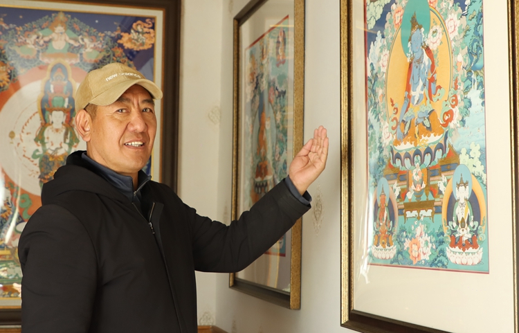 勉沖·羅布斯達(dá)出身于唐卡繪畫世家,家族里的五代人都從事傳統(tǒng)勉薩派唐卡繪畫,為帶動(dòng)西藏唐卡藝術(shù)的發(fā)展,他于2012年創(chuàng)辦西藏唐卡畫院,將家族技藝無償教給學(xué)生,使唐卡藝術(shù)得到與時(shí)俱進(jìn)的保護(hù)傳承和發(fā)展。
