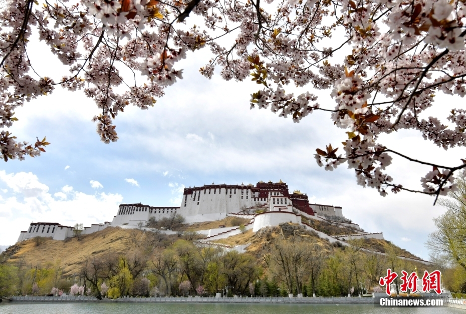 4月6日,西藏拉薩布達拉宮腳下春花綻放,與布達拉宮相互映襯。中新社記者 李林 攝