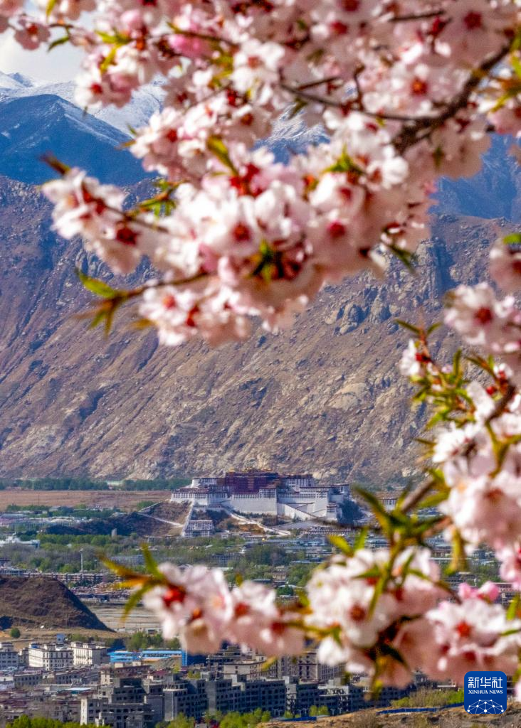 桃花映襯著布達(dá)拉宮(4月17日攝)。新華社記者 姜帆 攝