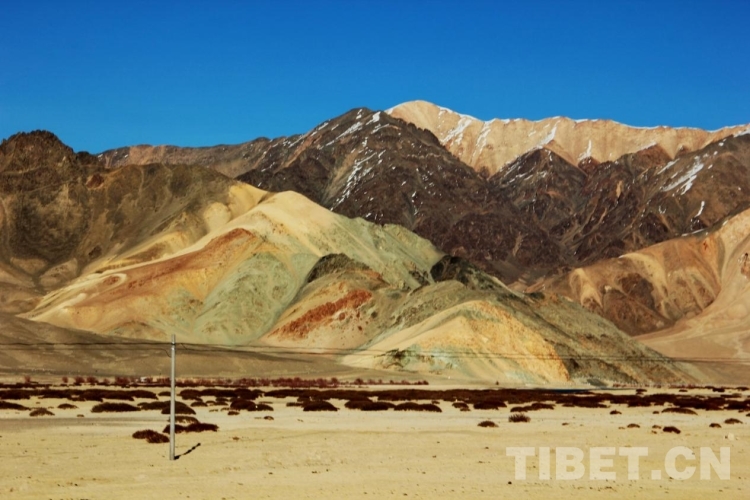 阿里地區(qū)地形復雜多樣,大致分為高原湖盆區(qū)、高山寬谷區(qū)、高山峽谷區(qū)三種形態(tài)。高海拔、高寒、日照時間長且輻射強等自然條件,使得阿里地區(qū)不僅擁有雄渾壯麗的高原風光,而且隨海拔、光照、季節(jié)、山體巖層所含礦物質種類等因素呈現出色彩繽紛的變化。圖為阿里地區(qū)噶爾縣一處多彩的山體 攝影:劉莉