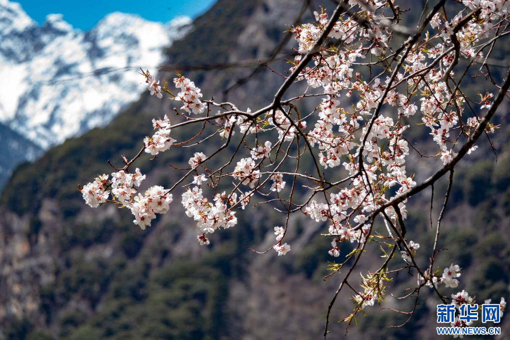 4月18日,在嘉黎縣尼屋鄉(xiāng)境內(nèi)盛開的桃花。新華網(wǎng) 旦增努布 攝
