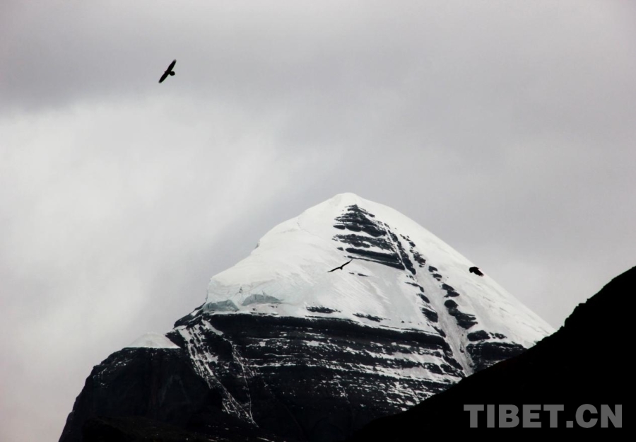 圖為位于西藏自治區(qū)阿里地區(qū)普蘭縣巴嘎鄉(xiāng)的岡仁波齊周圍群鷹翱翔 攝影:劉莉