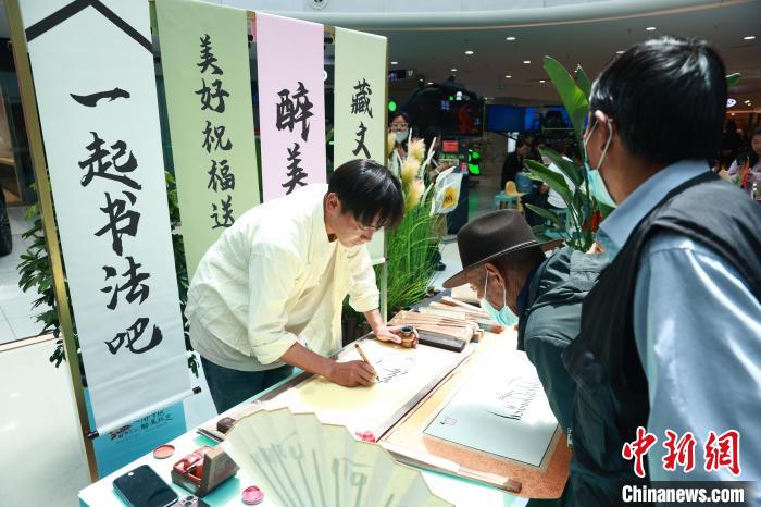 活動現(xiàn)場布置了多個展區(qū),包括風(fēng)景圖片展和藏文書法展區(qū)、特色民俗文化體驗區(qū)等,這些展區(qū)不僅展示了林芝的自然風(fēng)光和文化特色,也為民眾提供了視覺上的享受,也增添了濃郁的藏地風(fēng)情。