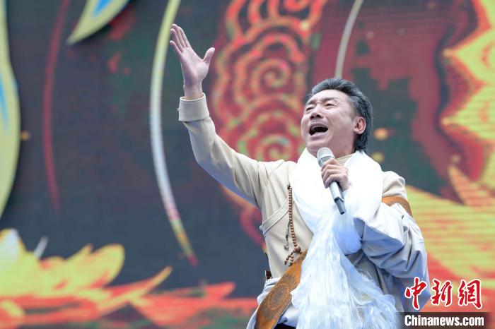圖為歌手容中爾甲正在演唱歌曲《高原紅》。貢嘎來松 攝