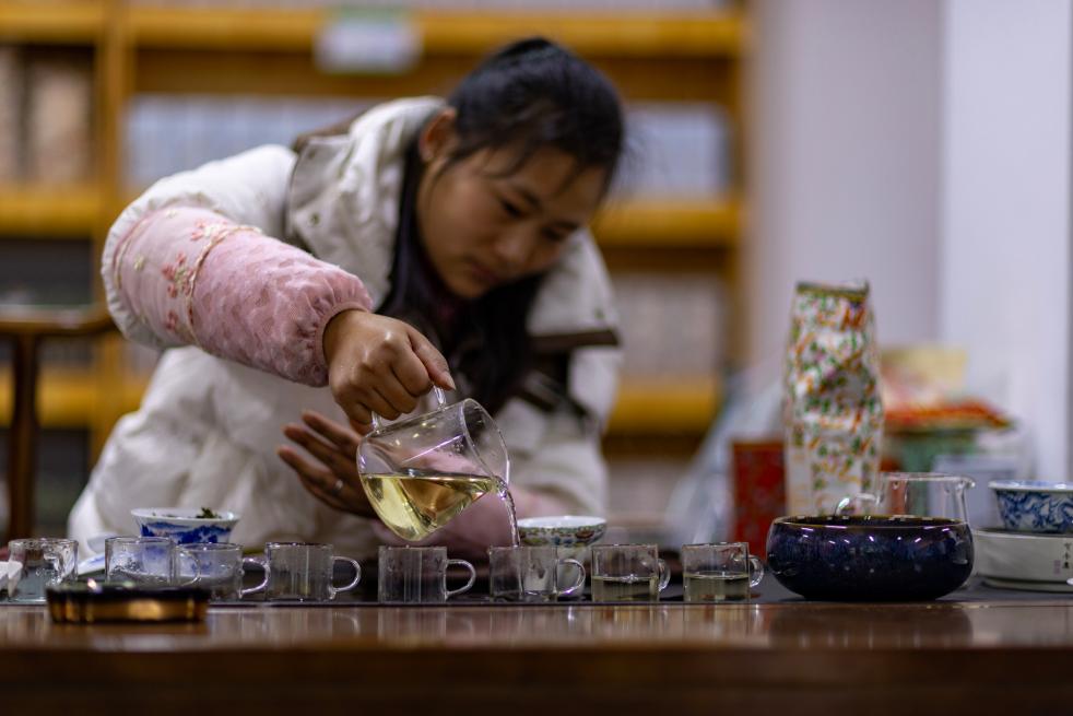 除銷售茶青之外,格林村人正在將茶產(chǎn)業(yè)不斷延伸??床?、喝茶、吃茶飯、體驗(yàn)做茶,圍繞茶和茶園,在政府的支持下,格林村有了自己的品牌,村里還建起了茶葉加工廠,形成茶產(chǎn)業(yè)“一條龍”發(fā)展鏈條?!?023年茶葉廠正式運(yùn)營以來,銷售額已經(jīng)超過千萬元?!蔽鞑亓种ツ撌畬毑铇I(yè)有限公司負(fù)責(zé)人陳超說。
