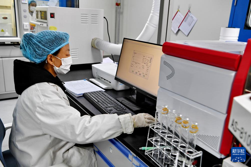 嘎確生態(tài)畜牧業(yè)發(fā)展有限責任公司檢驗人員在對牛奶中的污染物進行檢測(8月24日攝)。新華社記者 張汝鋒 攝 ??