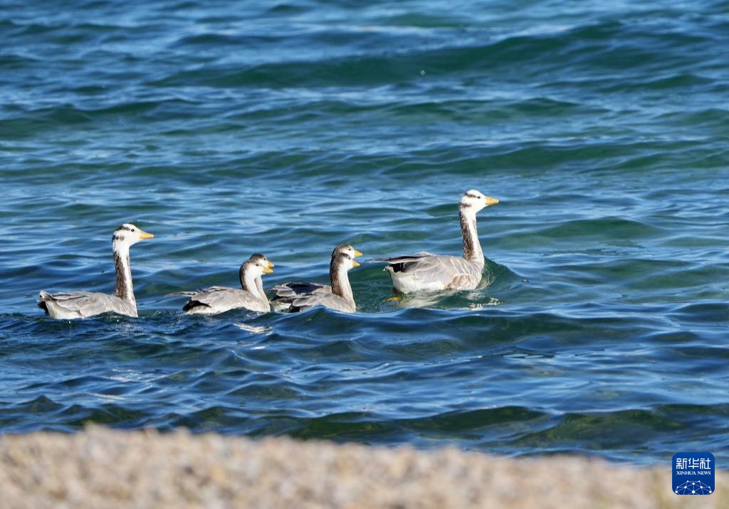 斑頭雁在錯(cuò)鄂湖里游弋(8月25日攝)。新華社記者 張汝鋒 攝