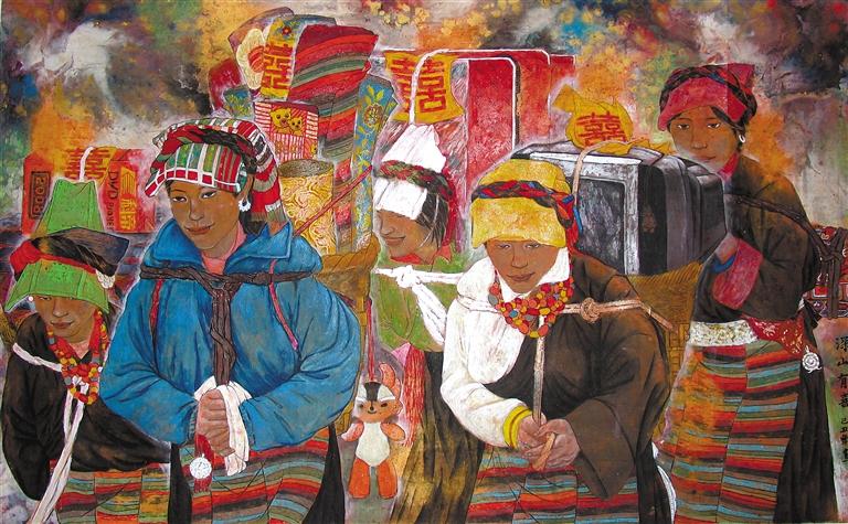 “藏族傳統(tǒng)文化不僅是中華民族文化的重要組成部分,也是世界文化的一角。將藏漢文化有機融為一體,是藝術(shù)家的歷史責(zé)任,也是藝術(shù)家取之不盡、用之不竭的永恒題材?!蔽鞑孛佬g(shù)家協(xié)會理事、二級美術(shù)師、西藏美術(shù)館展陳部主任周明暉說。