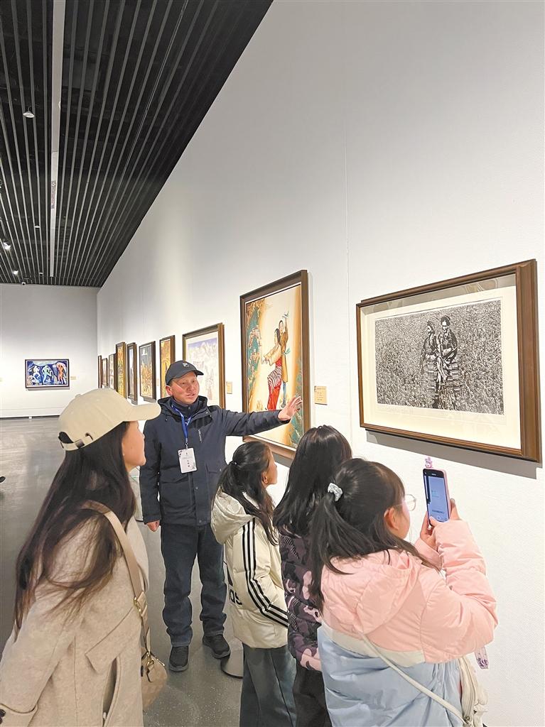 周明暉為參觀西藏美術(shù)館的群眾進行講解。