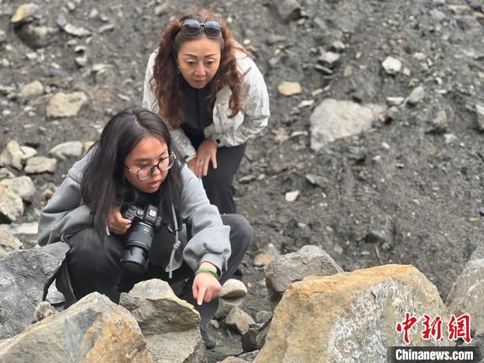 隨后,參訪者一行來(lái)到位于青海省海北藏族自治州祁連縣境內(nèi)的拉洞峽開展自然觀察活動(dòng)。到達(dá)觀察點(diǎn)后,參訪者們被大量有著特殊肌理和紋路的化石所吸引,大家紛紛擦亮雙眼開始了一場(chǎng)“尋寶大賽”。據(jù)介紹,這些為形成于距今約有3億年的化石,也是解開祁連山地質(zhì)之謎的鑰匙。